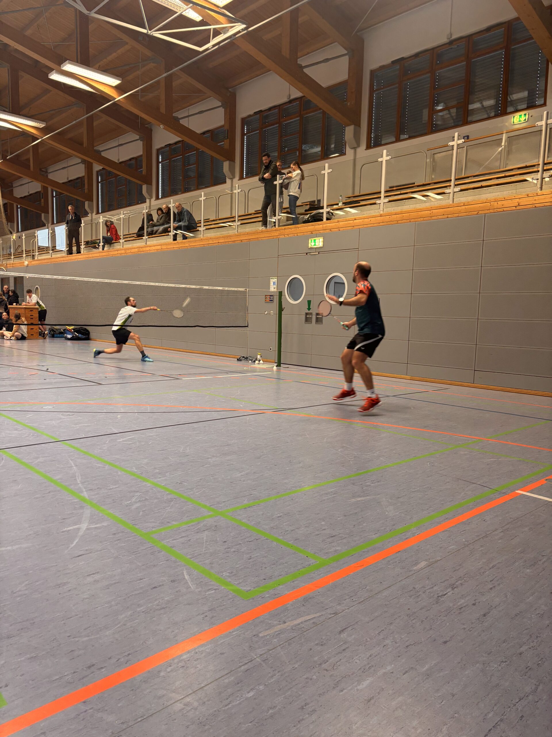 Der Spieltag begann mit den beiden Herrendoppeln. Im 1. Herrendoppel ließen Christian N. und Pe. nichts anbrennen und setzten sich gegen Naman S. und Gourav P. mit 21:12 und 21:10 souverän durch. Auch das 2. Herrendoppel mit Patrick W. und Andreas B. überzeugte mit einer konzentrierten Leistung und gewann gegen Adi D. und Dhruva B. mit 21:14 und 21:12.