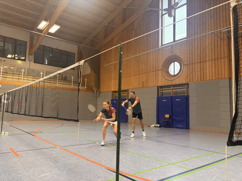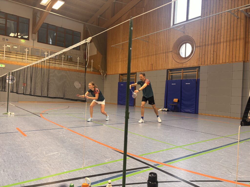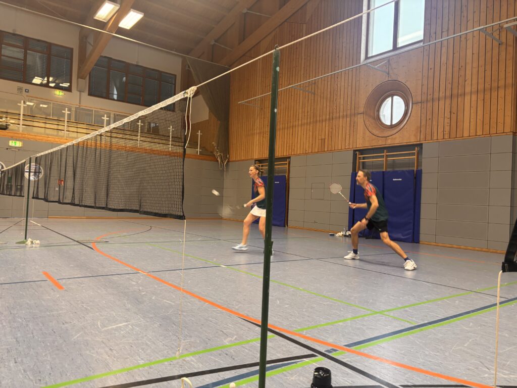 Im Damendoppel zeigten Stefanie B. und Andrea R. eine starke Moral. Nach einem knappen ersten Satz (20:22) steigerten sie sich deutlich und gewannen die folgenden Durchgänge mit 21:17 und 21:17, was einen wichtigen Punkt für die SG bedeutete.