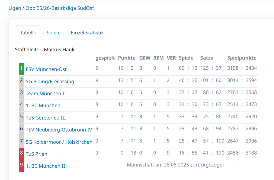 Die SG Piding/Freilassing konnte im Heimspiel der Bezirksliga SüdOst einen verdienten 5:3-Erfolg gegen den TuS Geretsried III einfahren. In einer insgesamt ausgeglichenen Begegnung überzeugte das Team vor allem durch Kampfgeist und Nervenstärke in den entscheidenden Spielen.